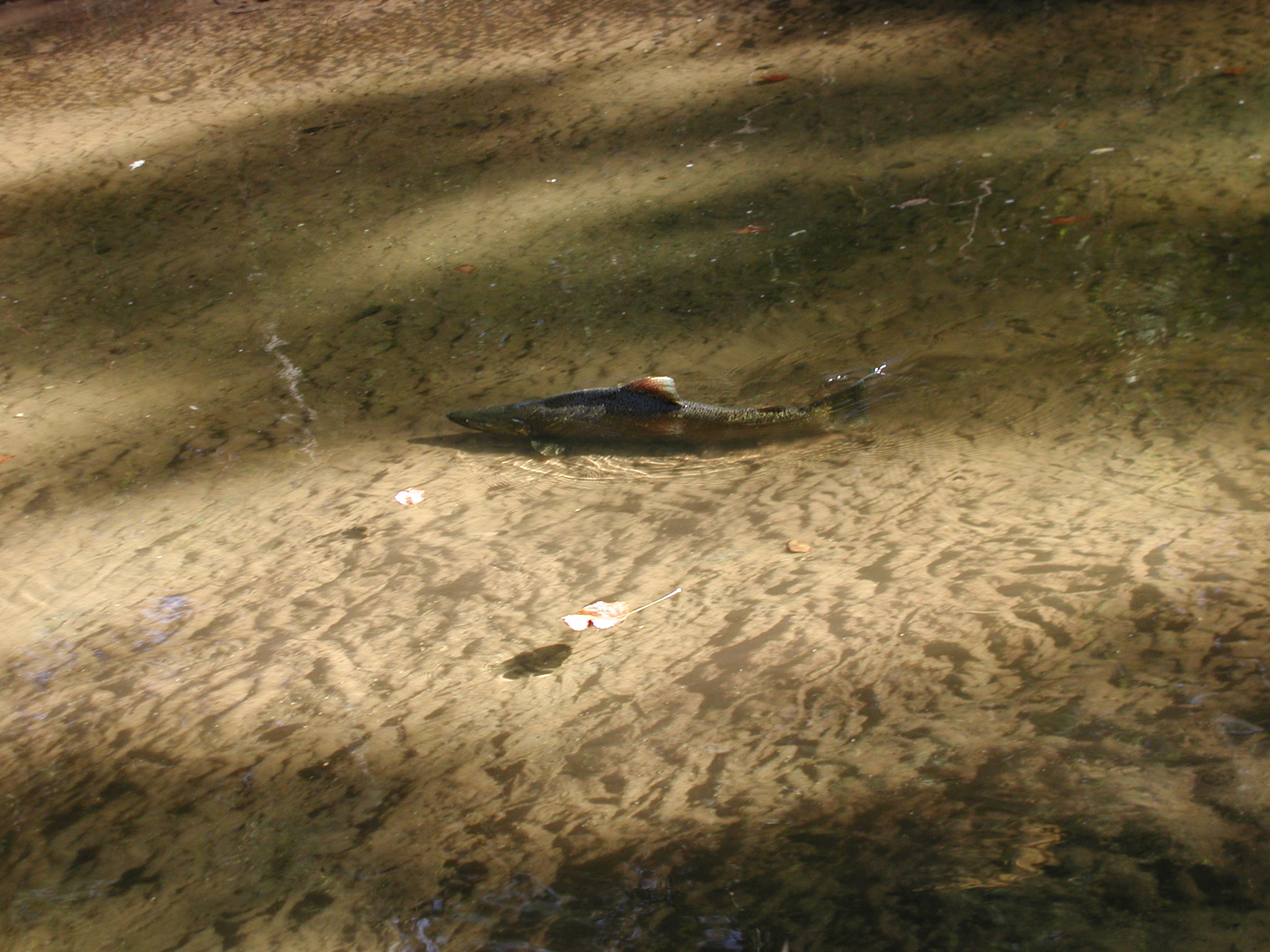 A Fish swimming downstream from the plunge pool below twin perched culverts, Brayton Creek and Cleveland Road |