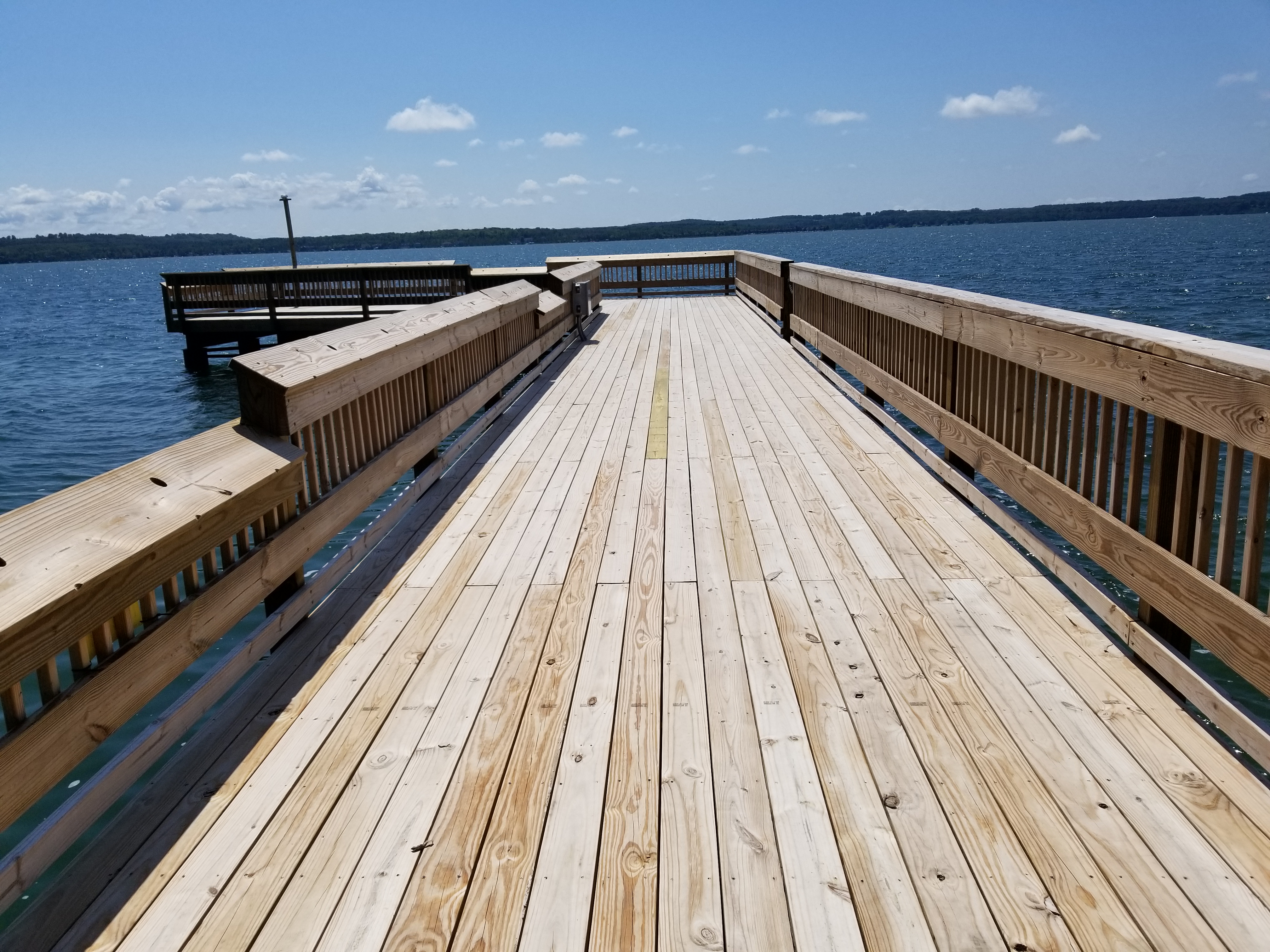 Hayes Township constructed an ADA-accessible public fishing pier at Hayes Township Park Camp Sea-Gull. The fishing pier is ten feet wide and extends approximately 157 feet into Lake Charlevoix. The pier provides deep-water fishing opportunities as it extends over a drop-off area.